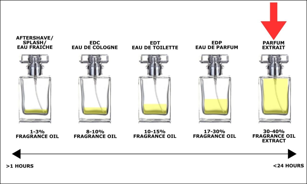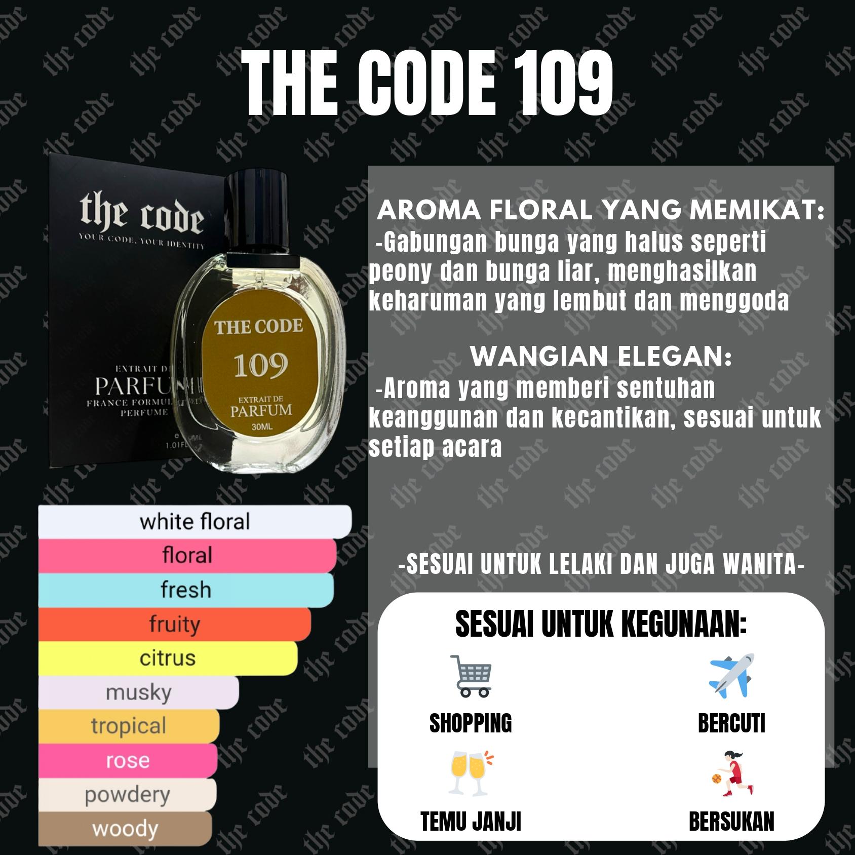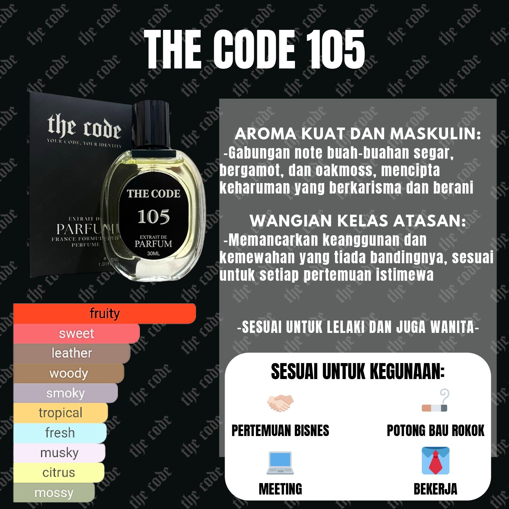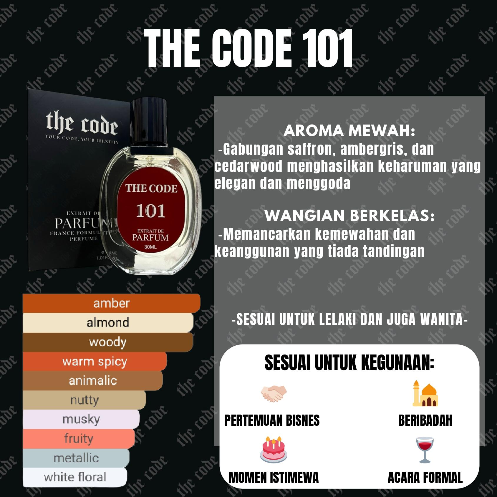 Perfume The Code menggunakan pati wangian gred Extrait De Parfum, yang bertahan sehingga mencecah 48 jam pada pakaian dan lebih lama jika disembur pada titik nadi seperti pergelangan tangan dan leher.